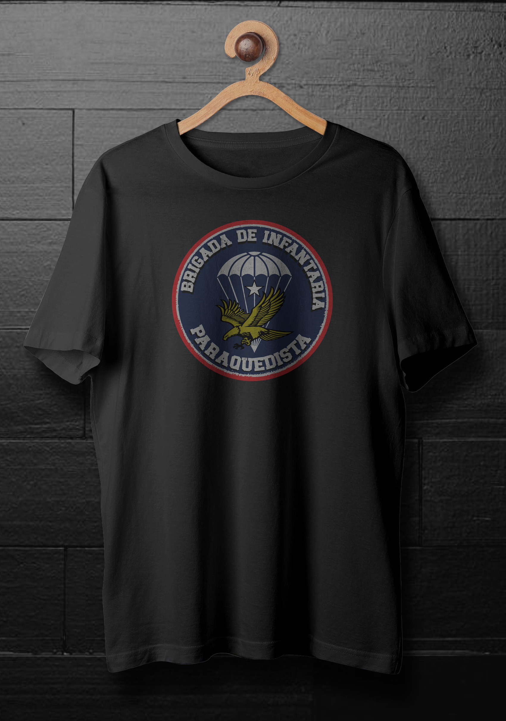 Mostre seu orgulho pela Brigada de Infantaria Paraquedista do Exército Brasileiro com a Camiseta oficial. Feita com material agoldão 30.1 de alta qualidade, esta camiseta combina estilo, conforto e um design militar autêntico.