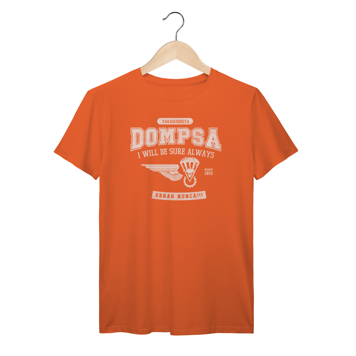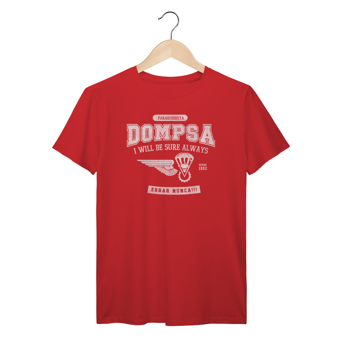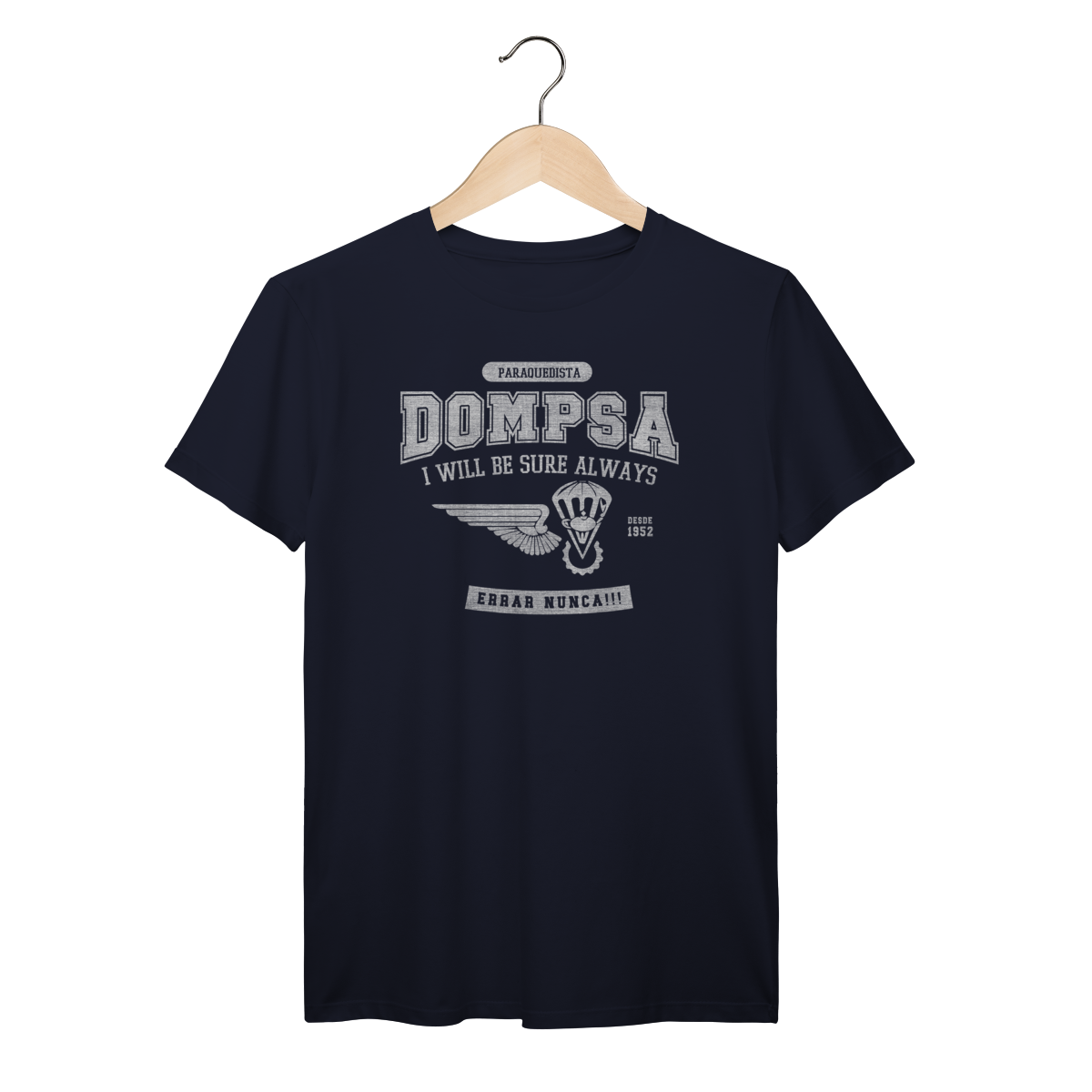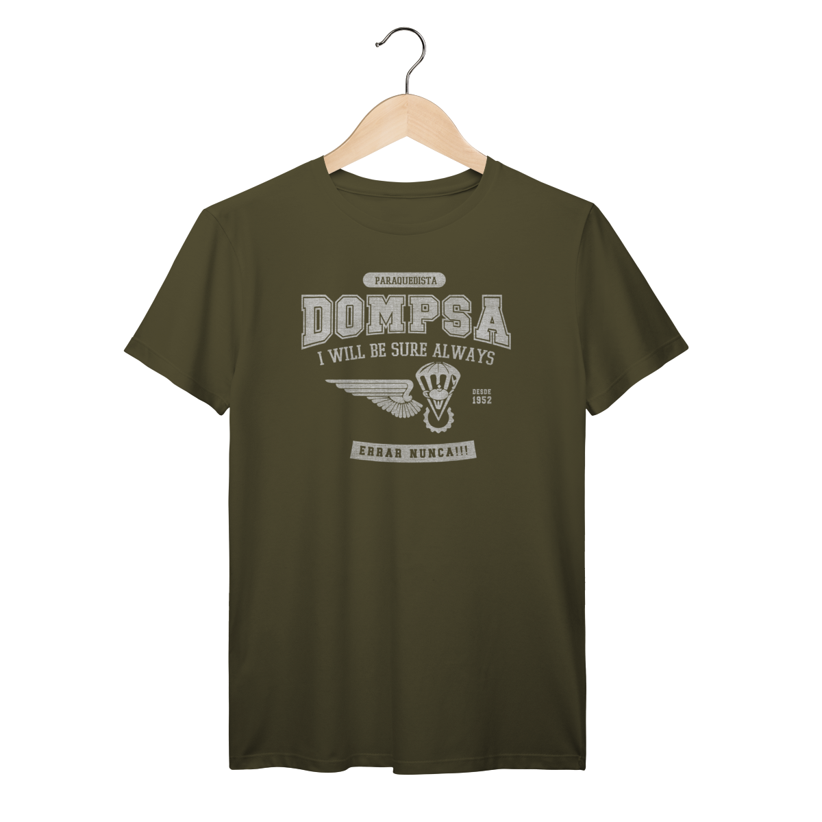 Exclusiva para quem conhece o valor da precisão. Celebre sua ligação com a DOMPSA (Batalhão de Dobragem, Manutenção de Pára-quedas e Suprimento pelo Ar)Feita para os fortes, esta camiseta em algodão 30.1 combina o orgulho da especialidade com o conforto necessário para o dia a dia.